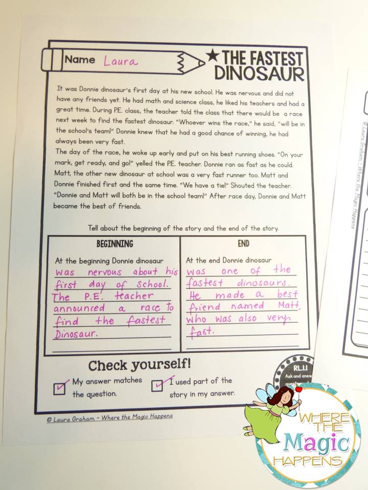 this series, addresses written comprehension for standard RL.1.1. “Ask and answer