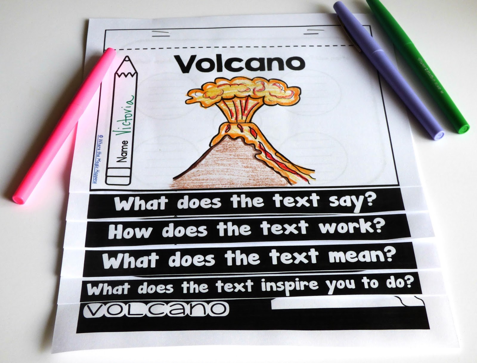 - Three markers: each marker is for the first three phases of a close read. I put these labels on each of the markers so the kids know what to do and when.