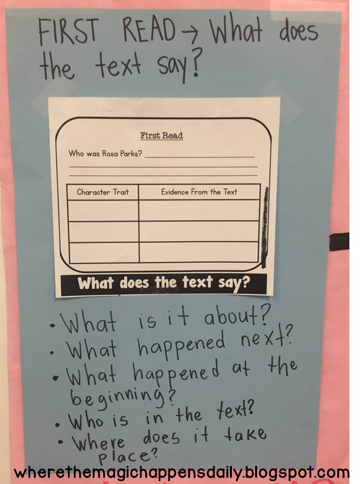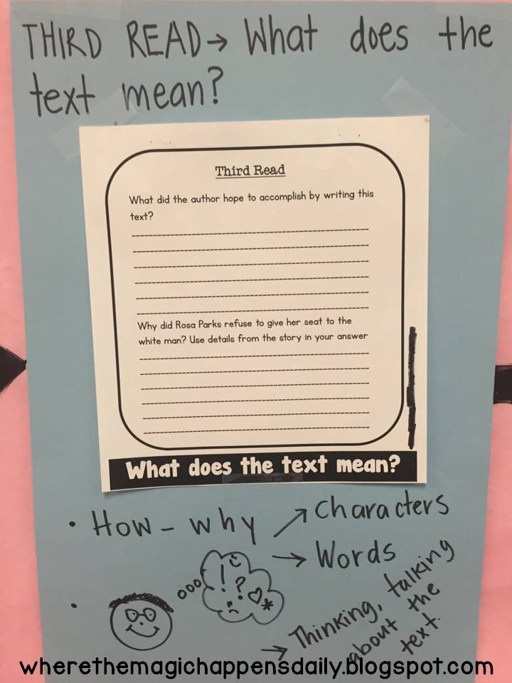 Just like in the second read where we discuss vocabulary, author’s purpose, and my favorite: text structure.