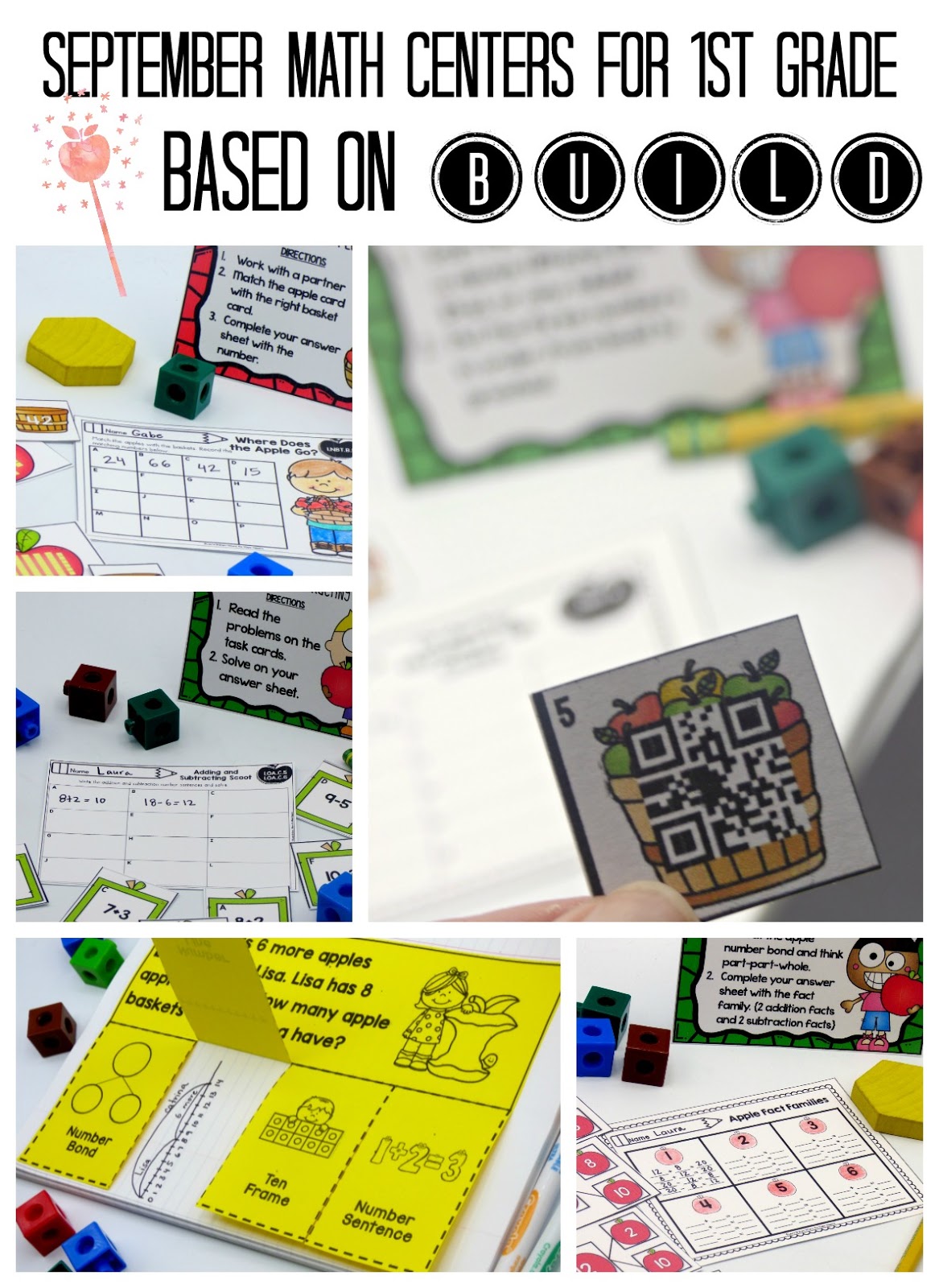 These are the first grade math instructional activities and Common Core standards that you can find in this September math centers pack: